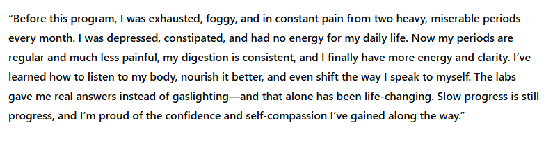 When you join the Energy & Hormone Reset, you’re not just purchasing a program—you’re investing in six months of guided support, personalized feedback, functional testing, and community that will continue to serve you long after our time together.